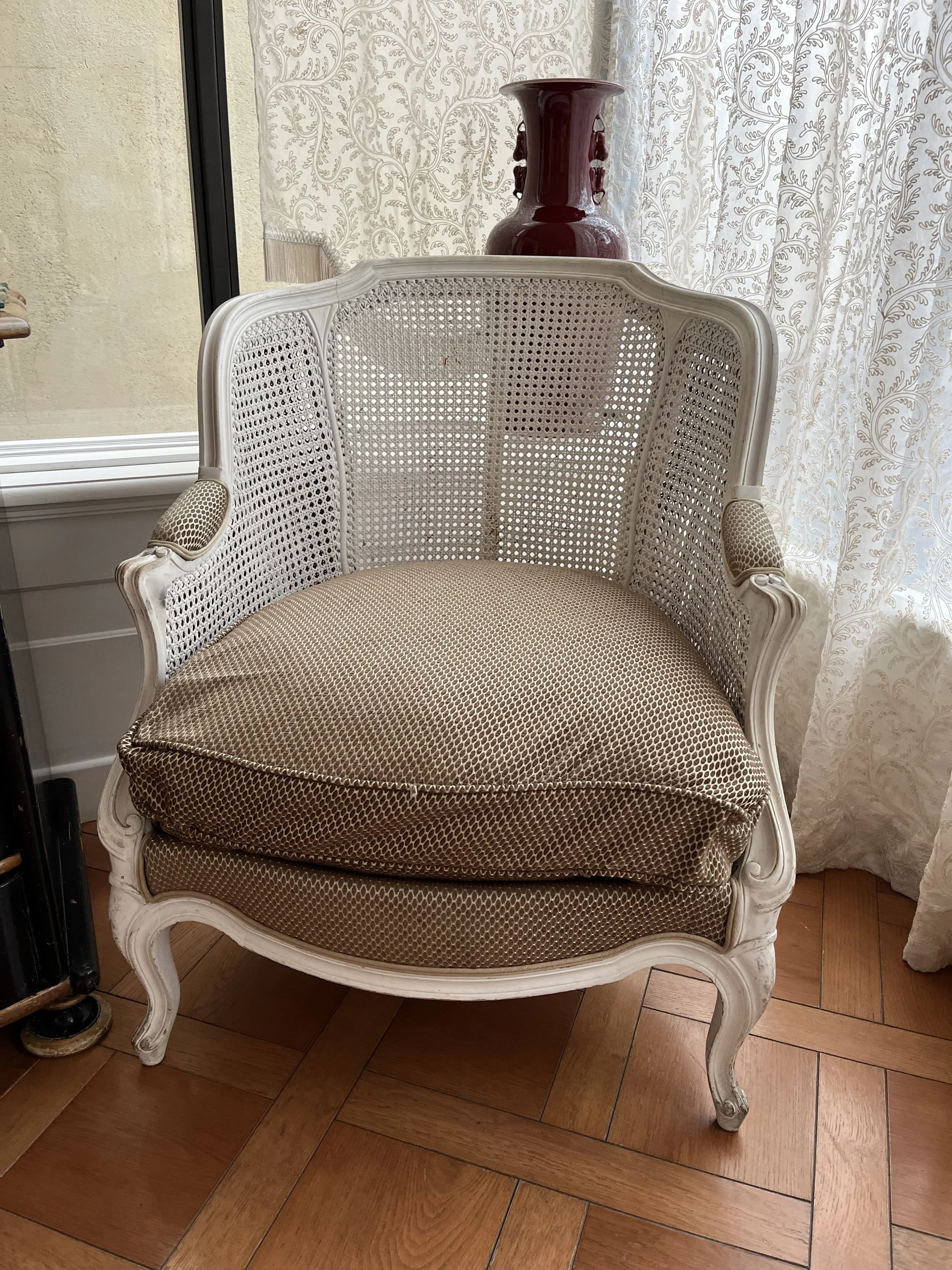 warm, light woods and textures abound, woven and weathered, time-worn palette of blues, grays and greens, floral fabrics celebrate natural gardens
